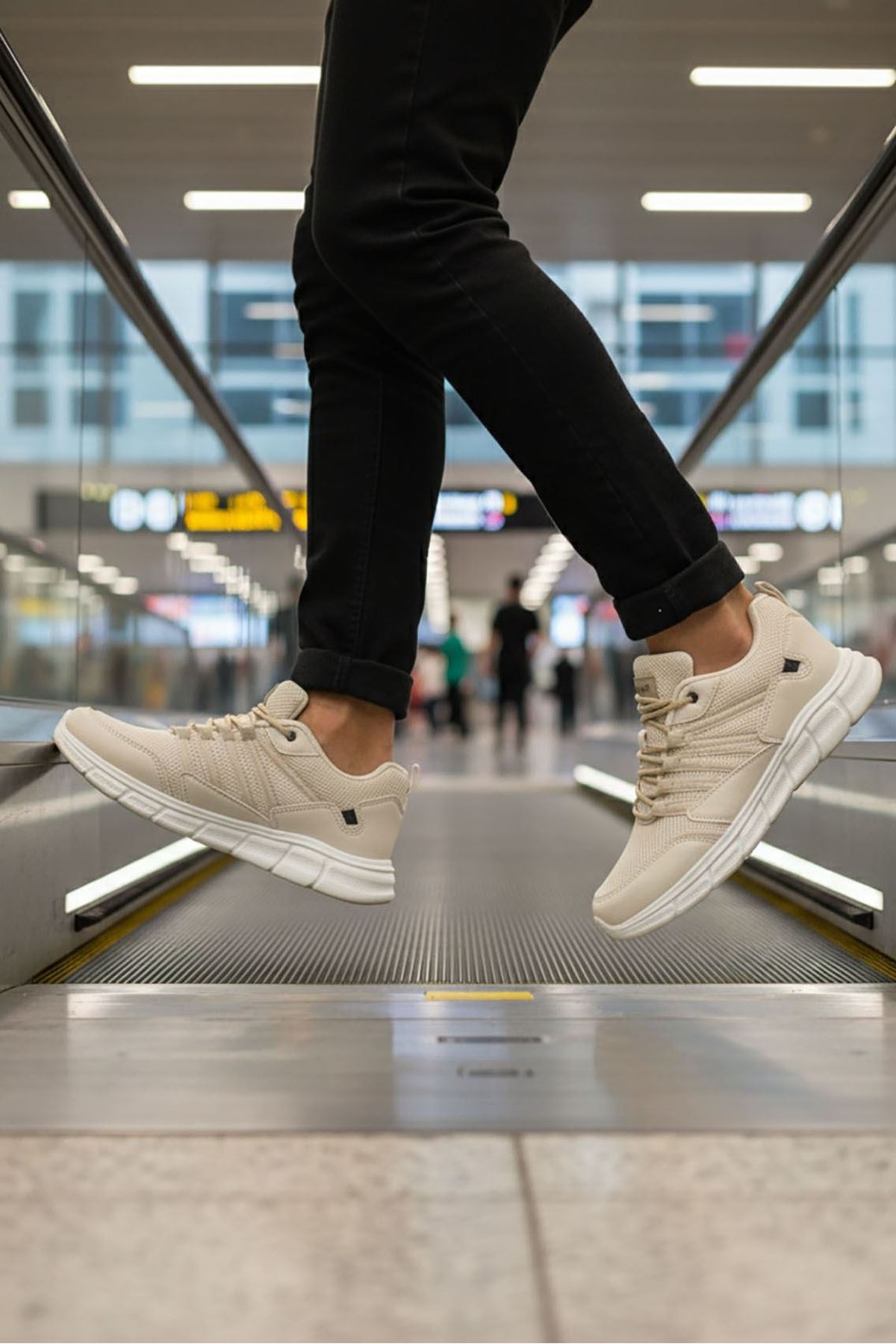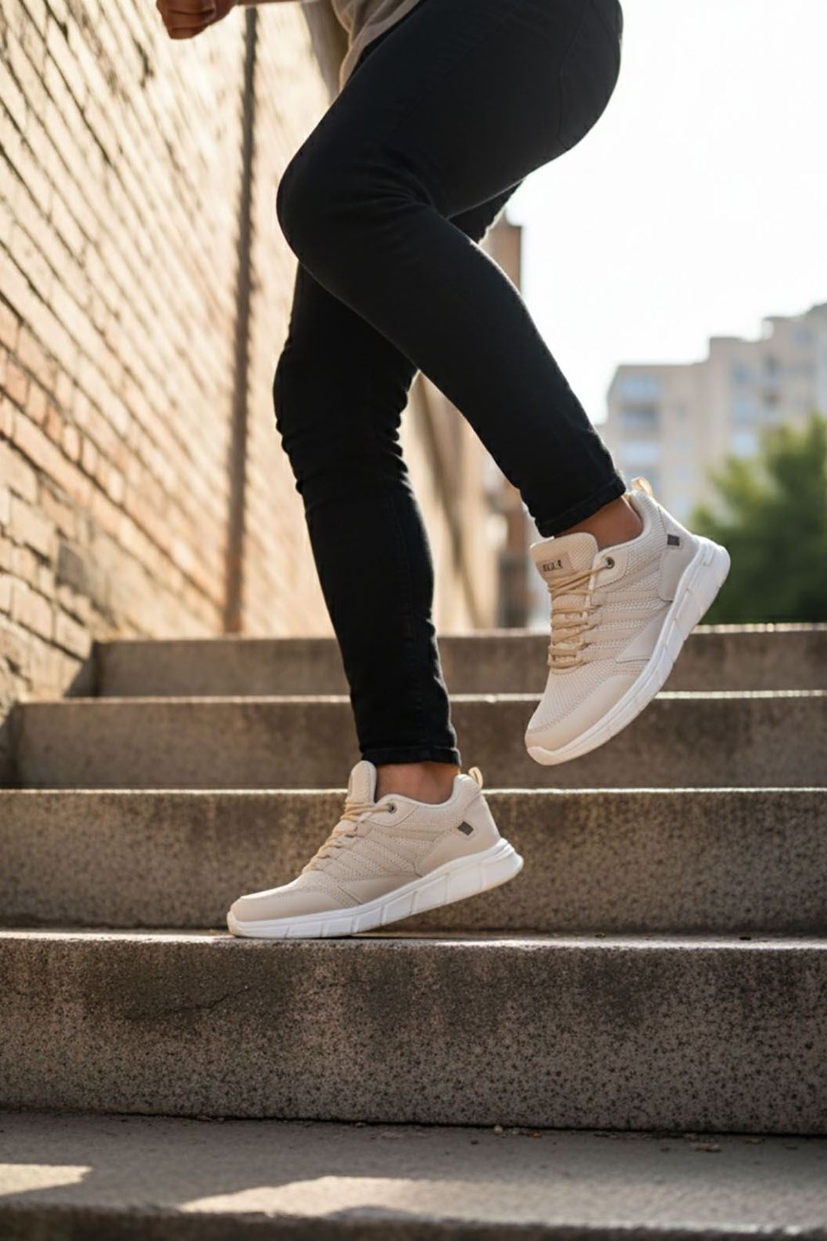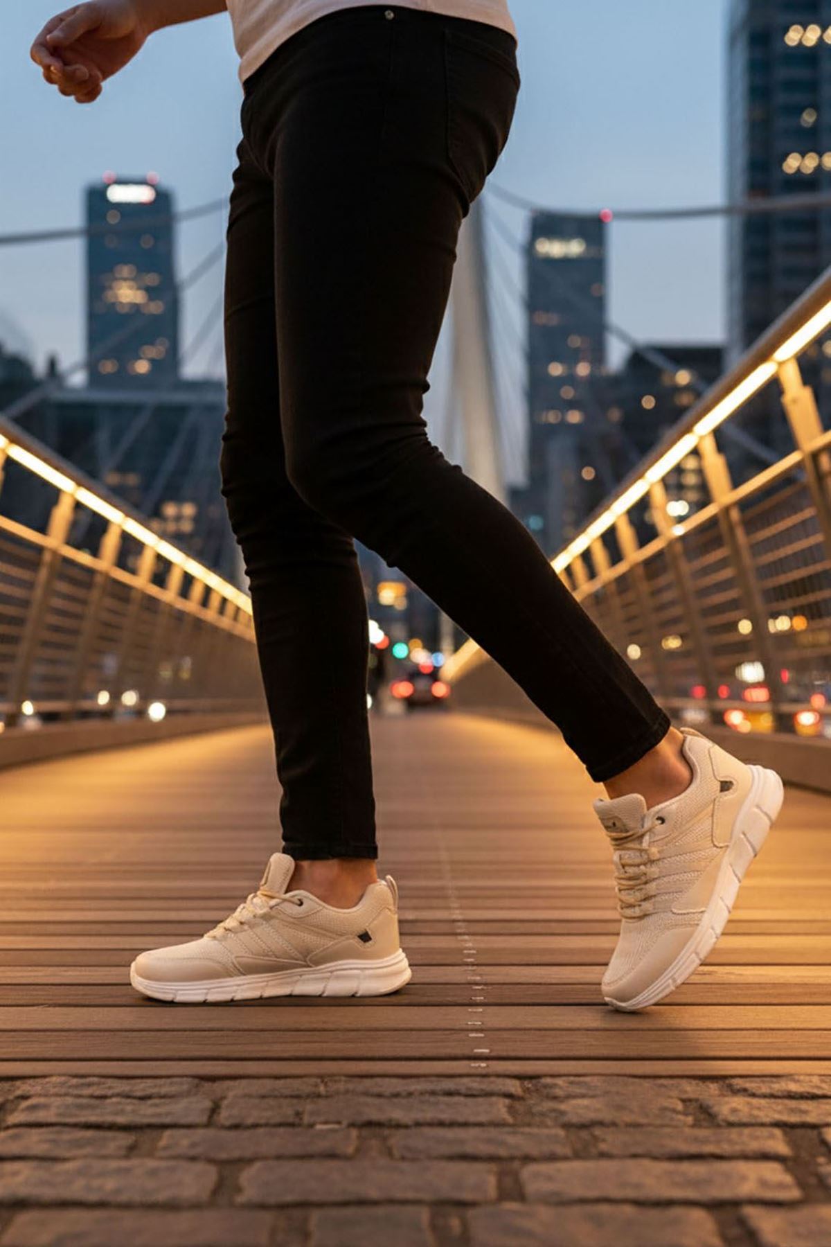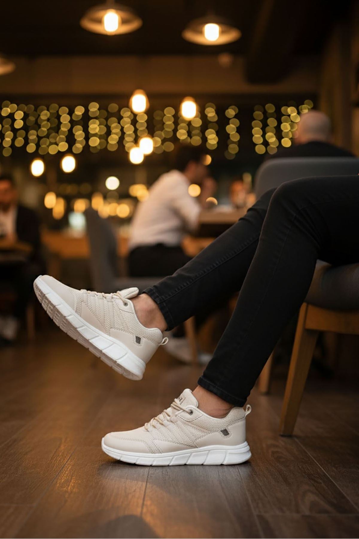 Boy Uzatan Gizli Topuk Bej Çizgili Erkek Spor Ayakkabı