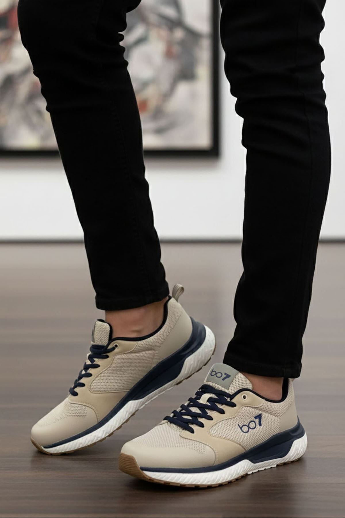 Boy Uzatan Gizli Topuk Bej Run Erkek Spor Ayakkabı