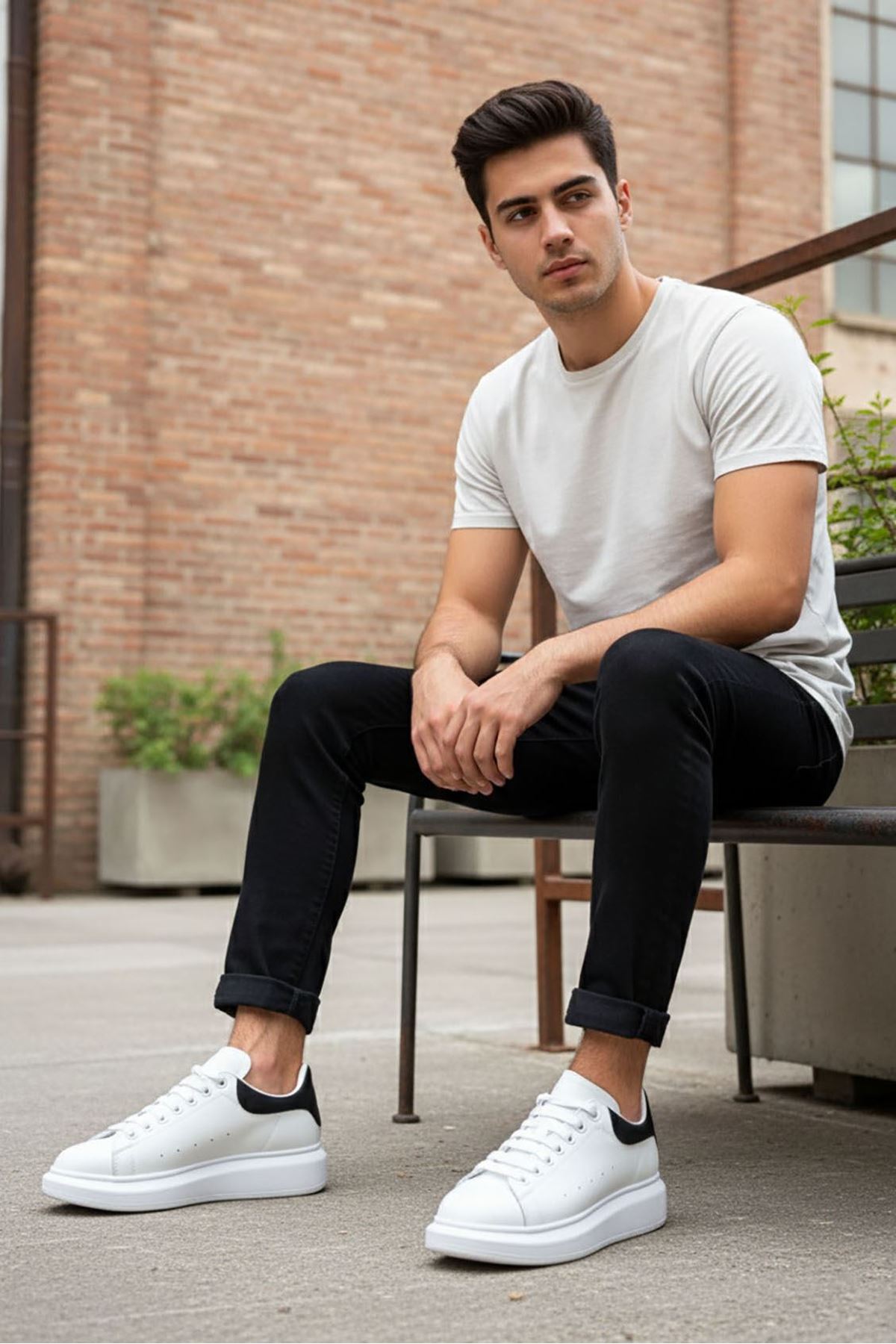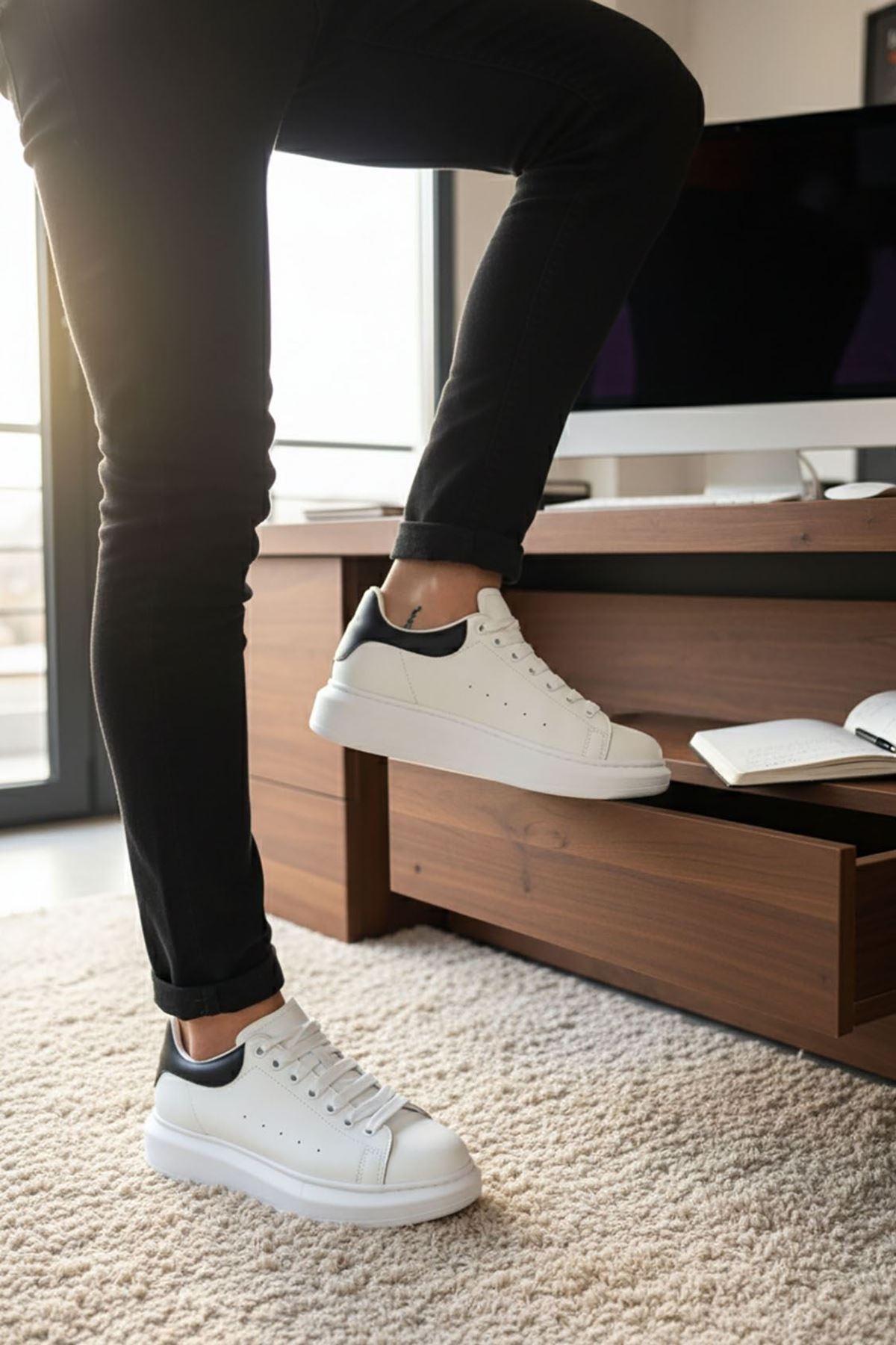 Boy Uzatan Gizli Topuk Beyaz Yüksek Taban Erkek Spor Ayakkabı
