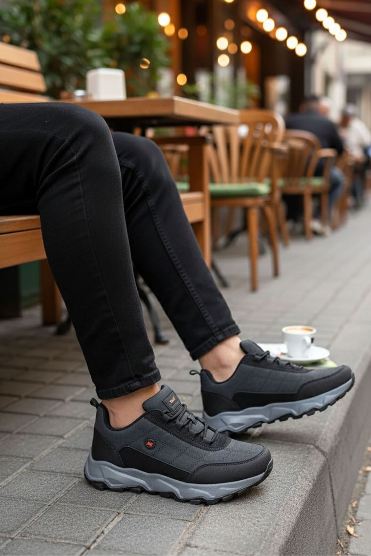 Boy Uzatan Gizli Topuk Füme Siyah Outdoor Trekking Erkek Ayakkabı
