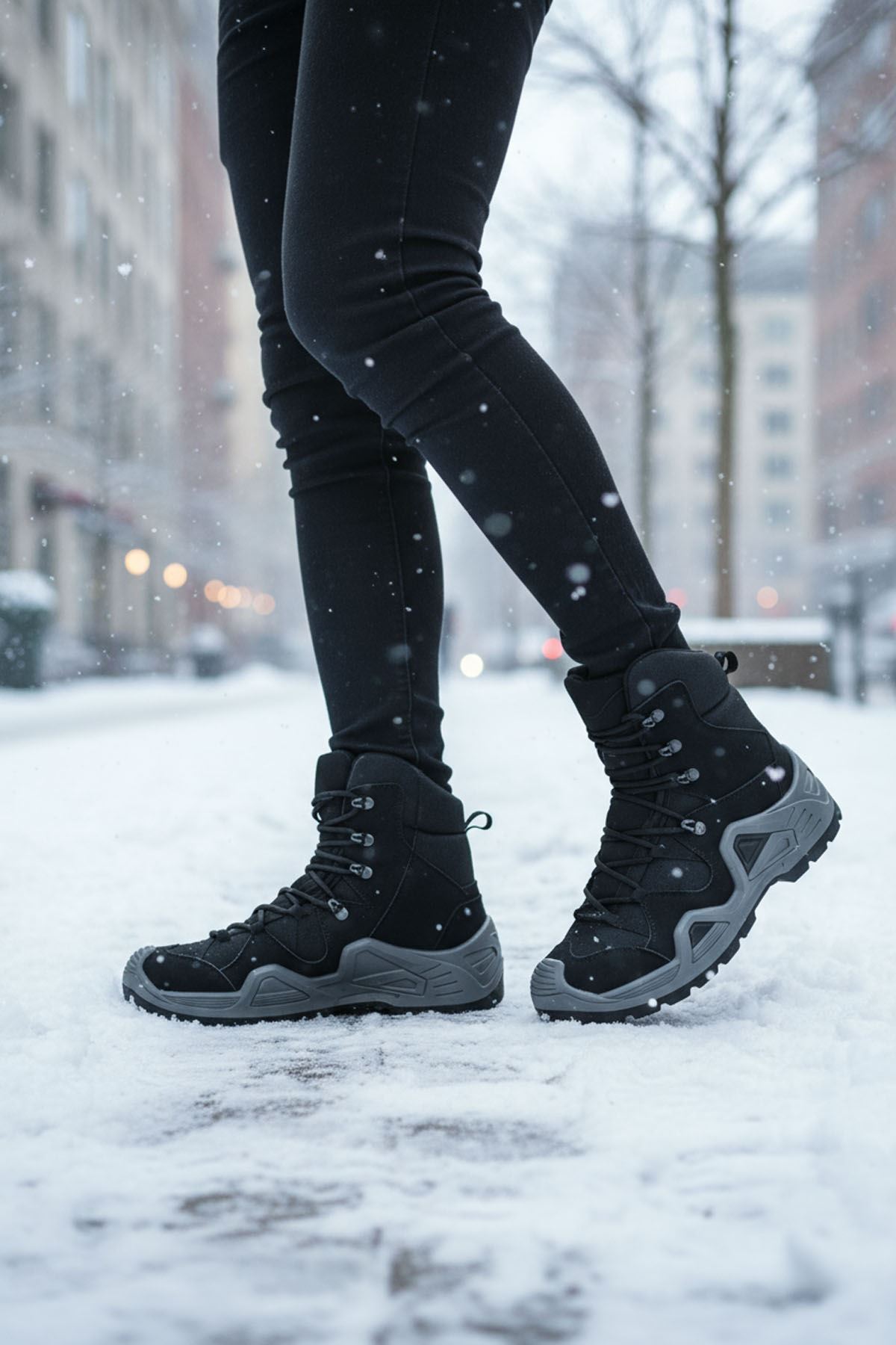 Boy Uzatan Gizli Topuk Siyah Füme Combat Gtx WaterProof Fermuarlı Bot