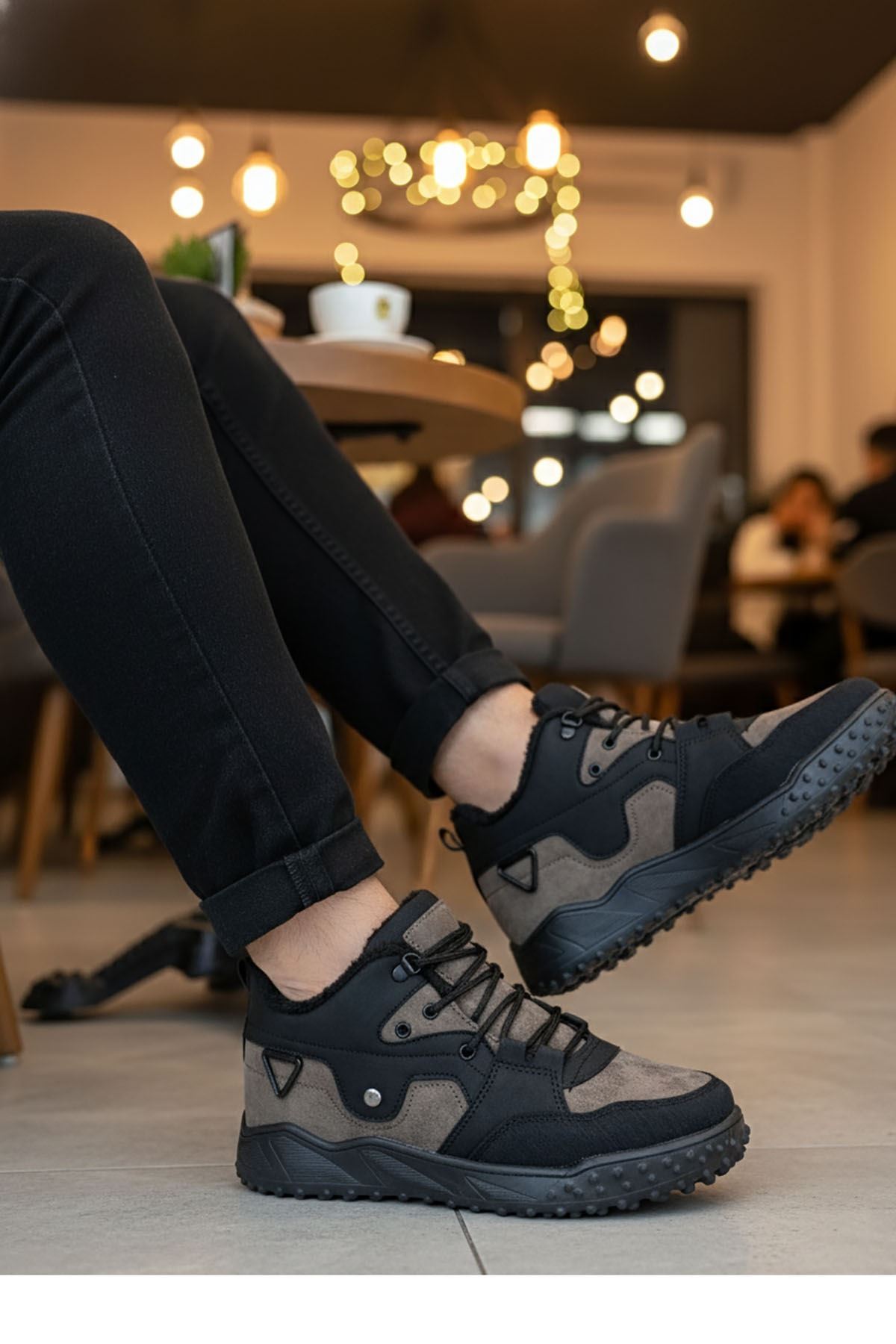 Boy Uzatan Gizli Topuk Siyah Kahve İçi Kürklü Erkek Outdoor Trekking Yarım Bot