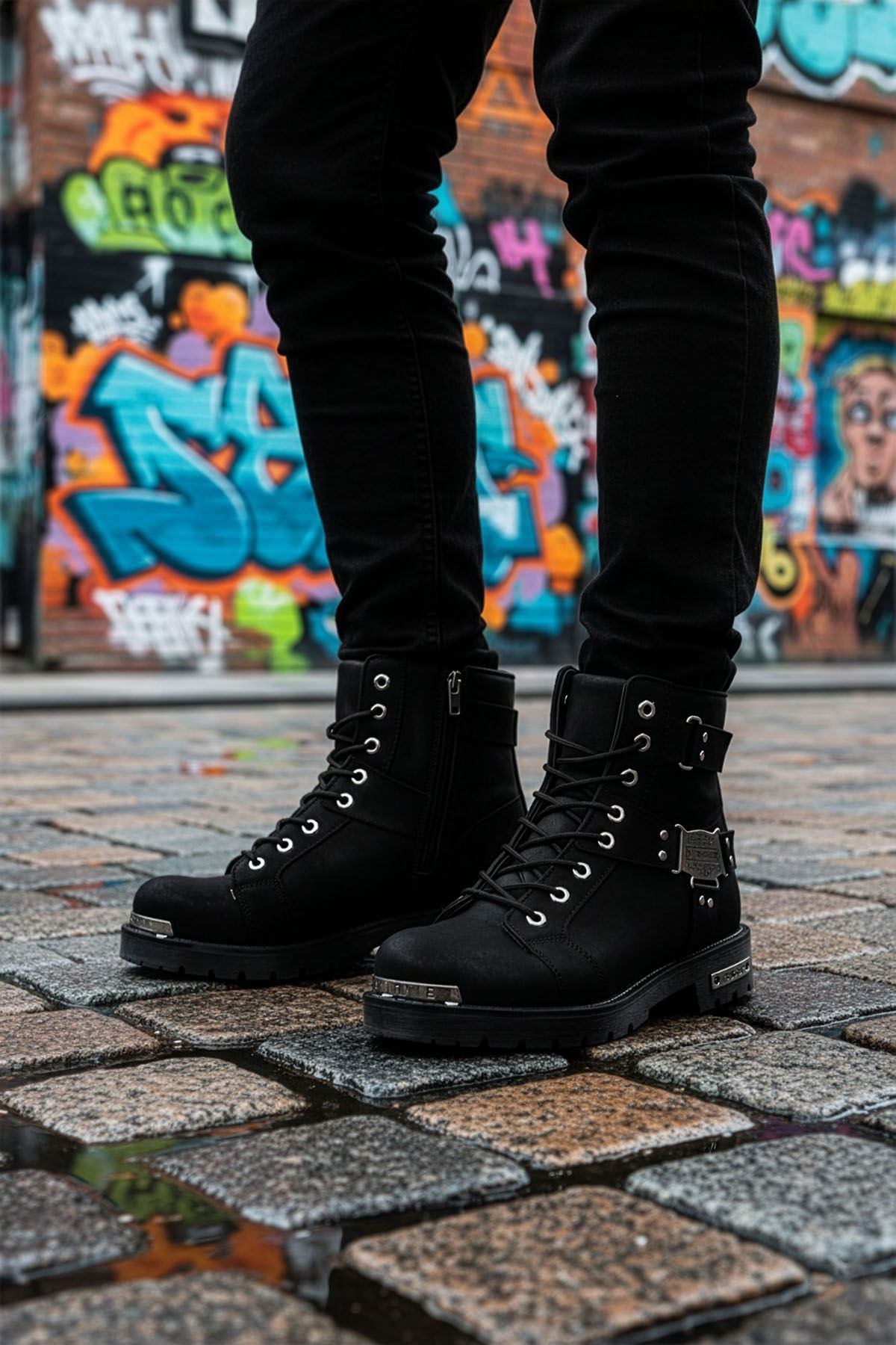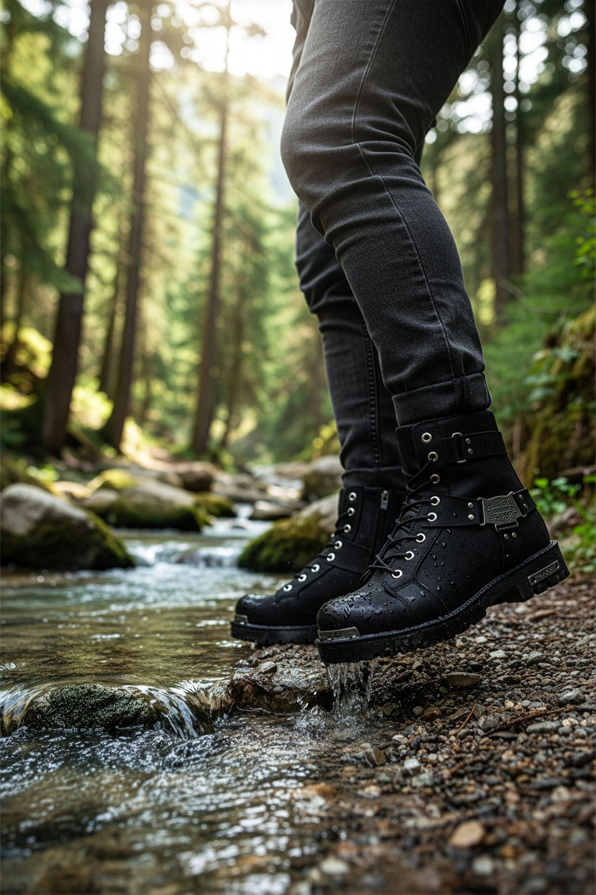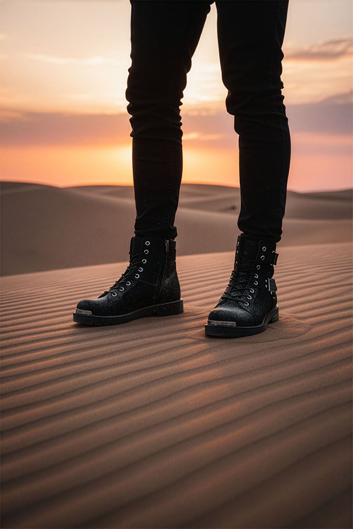 Boy Uzatan Gizli Topuk Siyah Motorcu Bot