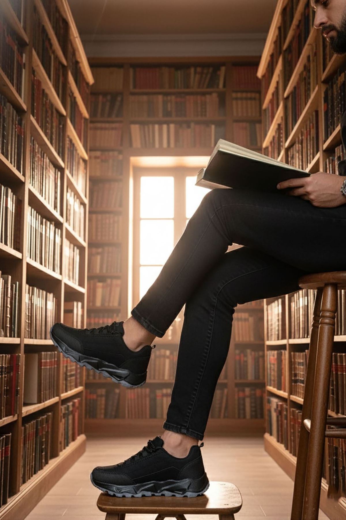 Boy Uzatan Gizli Topuk Siyah Outdoor Trekking Erkek Ayakkabı