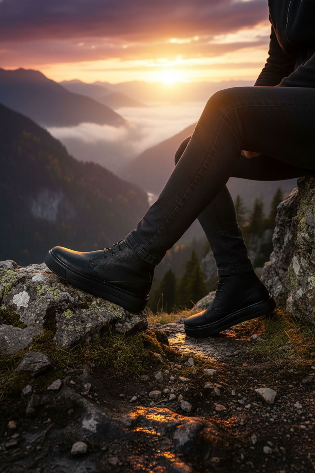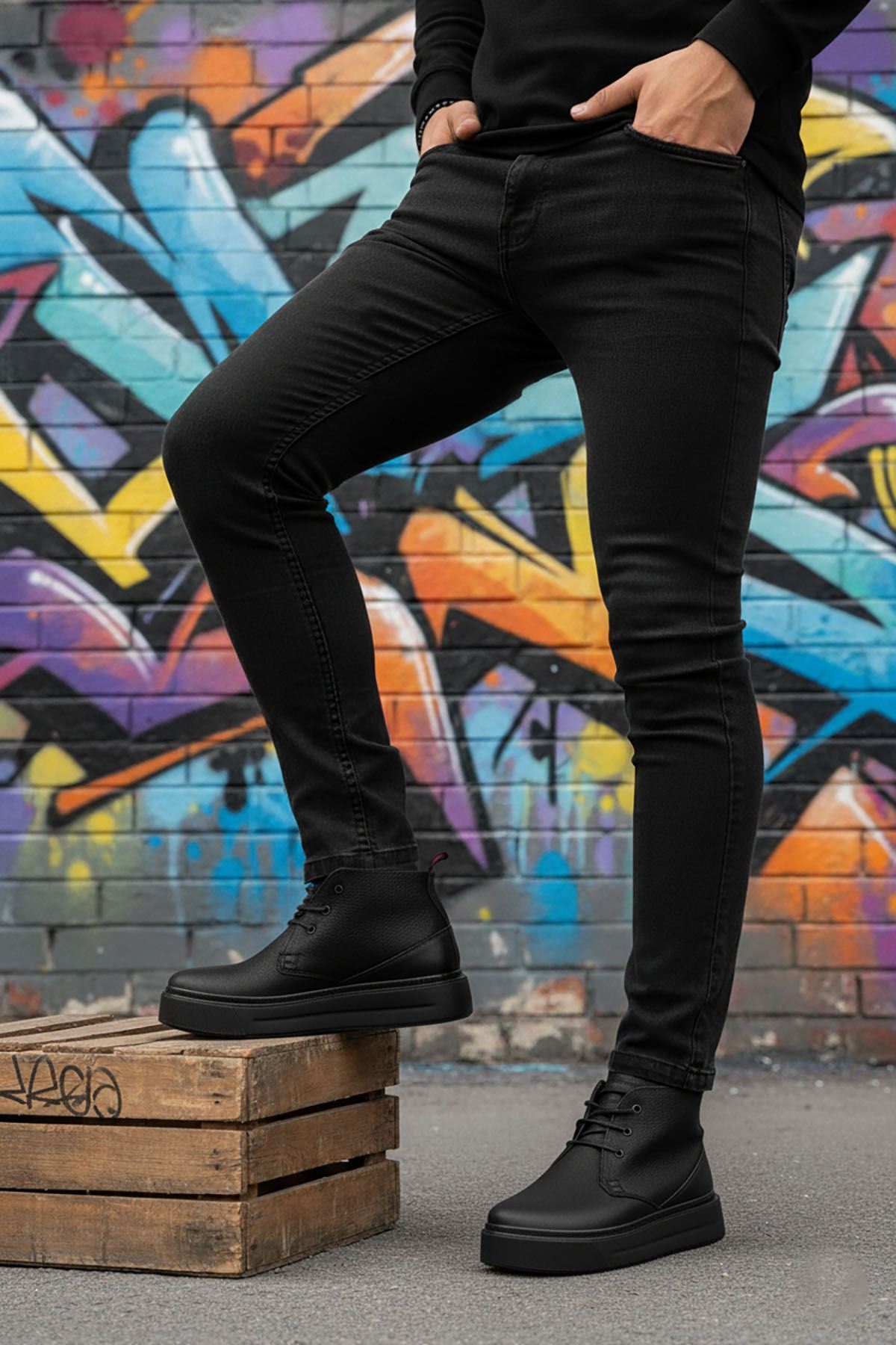 Boy Uzatan Gizli Topuk Spor Bot Model Yüksek Taban Siyah Erkek Ayakkabı